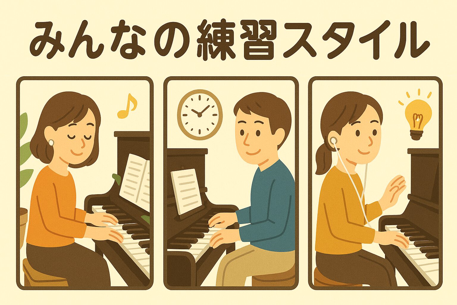 大人としてピアノを楽しんでいる方々の“練習時間スタイル”を紹介しつつ、