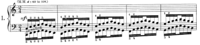 ハノンの1番はとてもシンプルで初心者の方でも少し練習すれば弾けるようになると思います