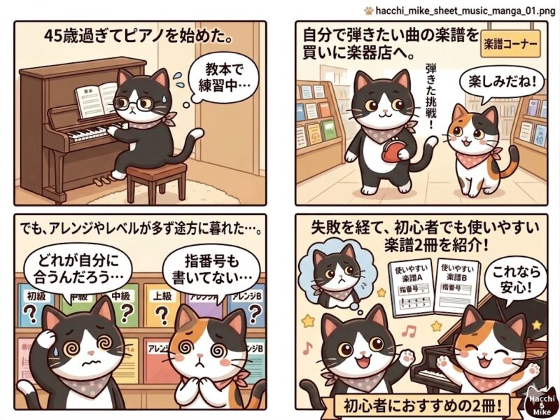 楽譜選びって、最初はほんとうに難しく感じます。でも、失敗しながら自分に合うものを見つけていくのも、大人ピアノの楽しさのひとつだと思っています。