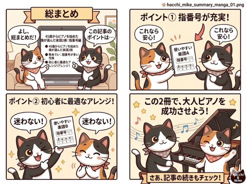 ぼくは②で一回失敗しました。指番号なしの楽譜を買って、弾けるところまで進めなかったんです。それ以来、楽譜を選ぶときは必ず指番号の有無を確認するようにしています。