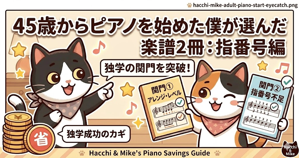 ぼくは②で一回失敗しました。指番号なしの楽譜を買って、弾けるところまで進めなかったんです。それ以来、楽譜を選ぶときは必ず指番号の有無を確認するようにしています。
